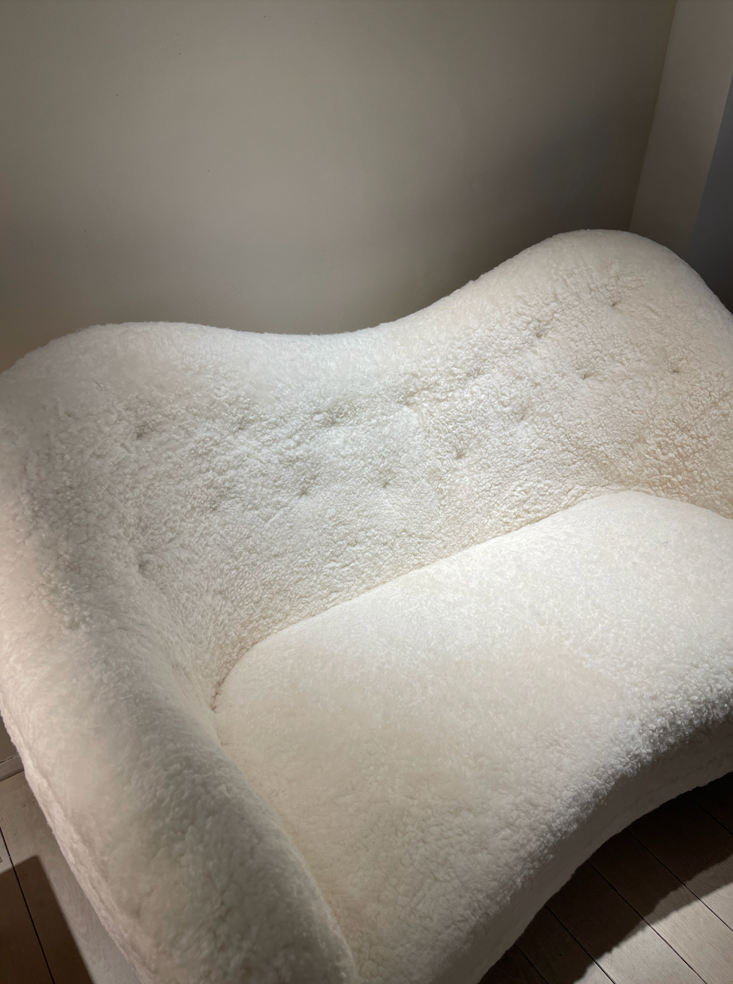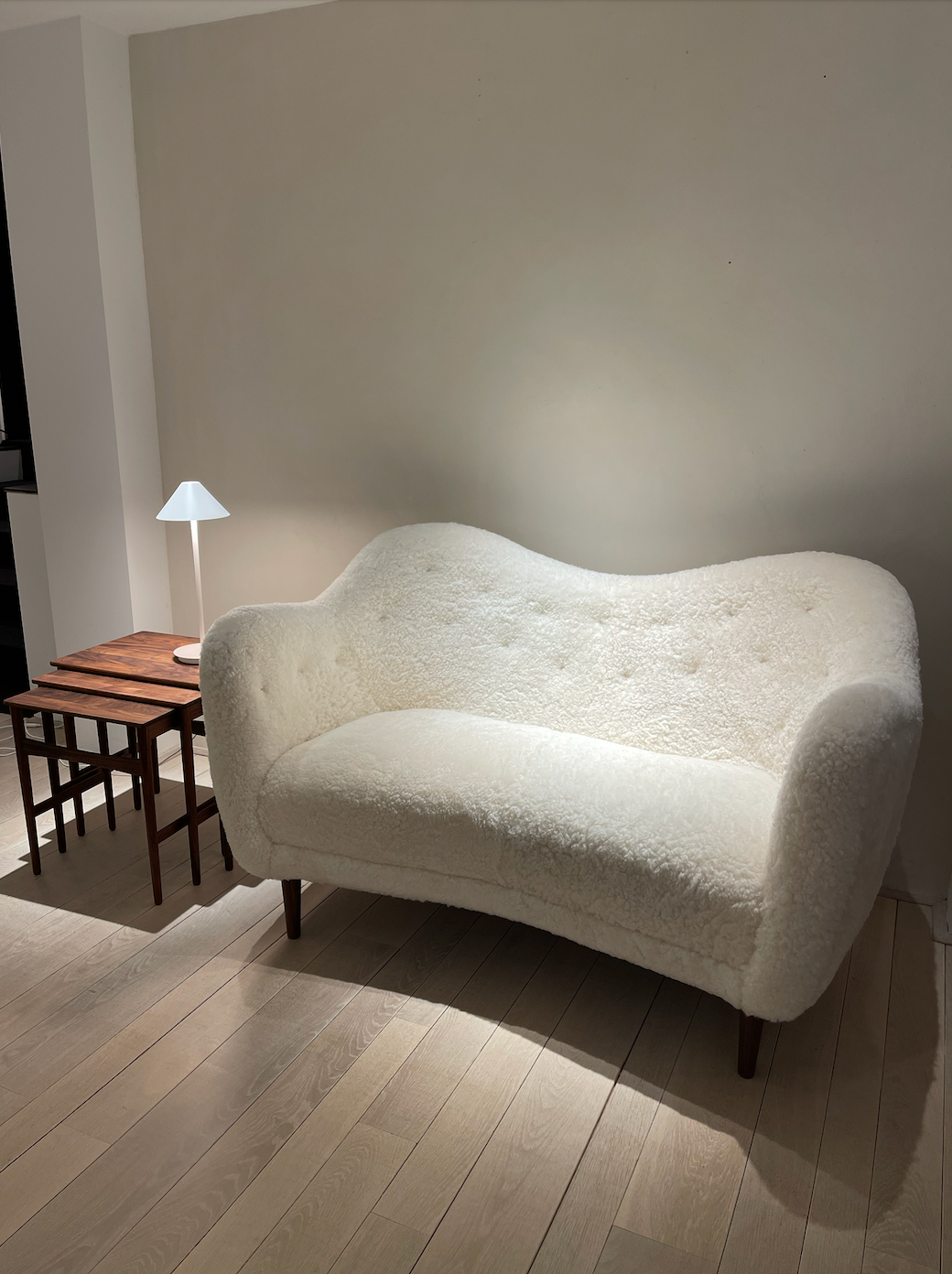 As the name suggests, this bold, curvaceous two-seater sofa was originally designed in 1946 and was crafted by upholsterer Carl Brørup in his Copenhagen workshop. Finn Juhl, who was greatly influenced by modern art, integrated this inspiration into his designs during that period, with the 46 Sofa being a prime example. Exhibiting a free-flowing design and sculptural form, the 46 Sofa encapsulates Finn Juhl's approach to furniture design. It showcases the liberation from traditional constraints that modern art embodies.