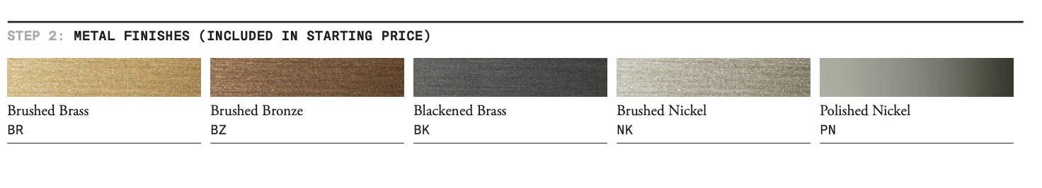 Hand-blown frosted borosilicate glass and hand-finished or electroplated brass.