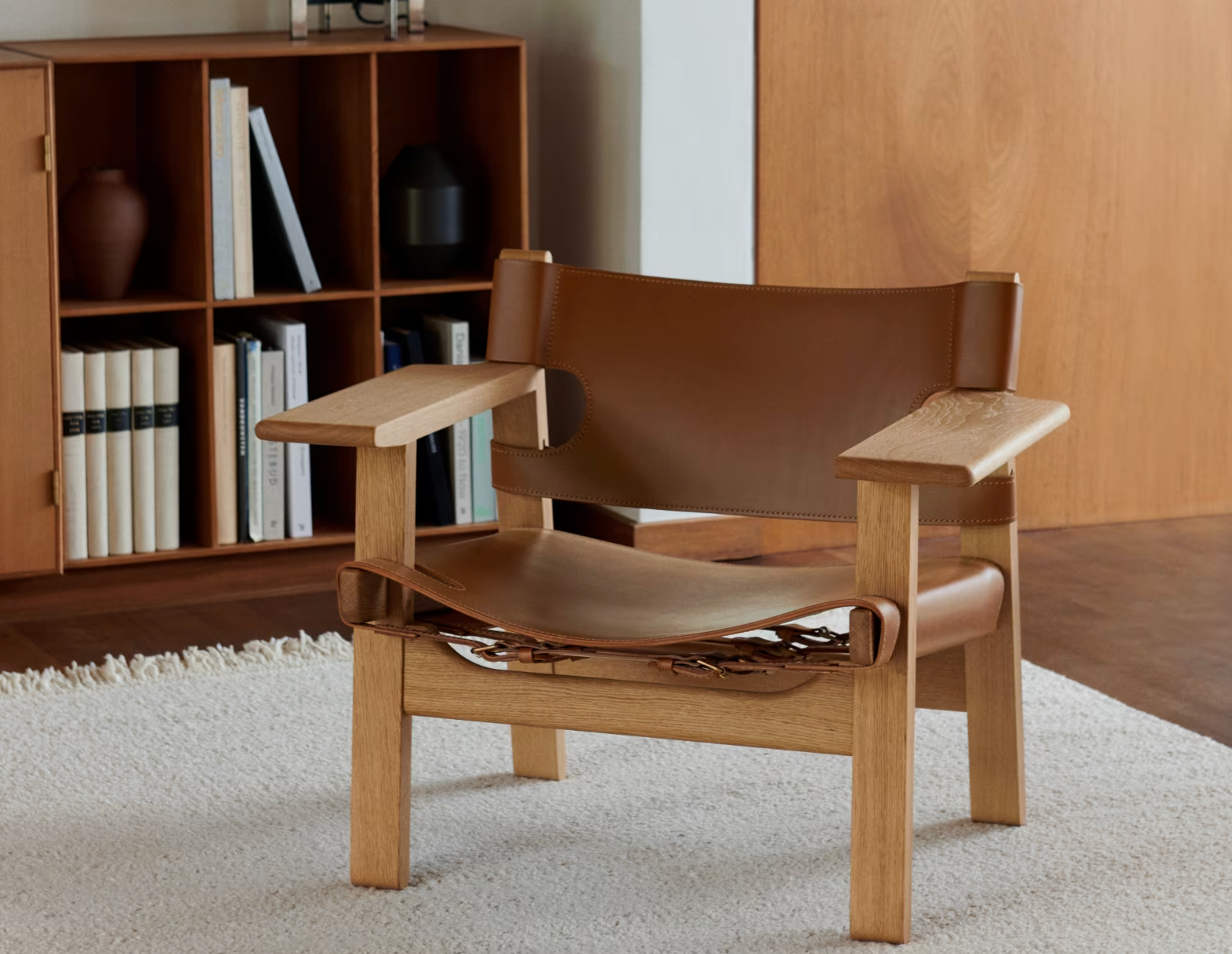 The iconic Spanish Chair is Børge Mogensen’s masterful contribution to modern design, designed for Fredericia in 1958. Solid oak or walnut combined with the highest calibre saddle leather creates a strong presence in a chair that will only become more beautiful with age.