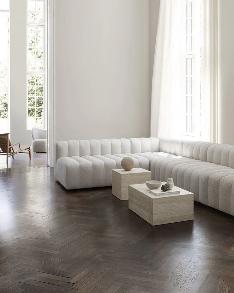 Made from travertine stone, Cubism is all about embracing the qualities and beauty of the material, which for centuries has been used in classical architecture around the world. The natural stone has an irregular surface with small holes and imperfections, adding a tactile quality to the geometric shape.