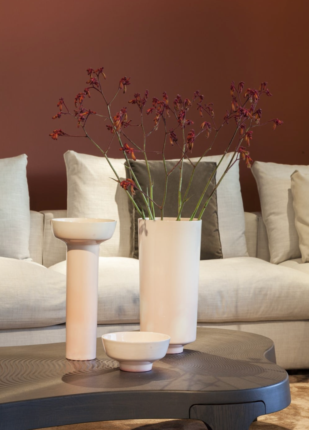 With ‘Isola’, Roderick Vos challenges the convention of having round, square or rectangular tables. Roderick was inspired by the pattern that waves leave on sandy beaches. Hence, the tabletops of the dining table, side table and coffee table in the series, feature an organic silhouette and delicately milled rings, making ‘Isola, quite literally, an island of beauty in any space.
