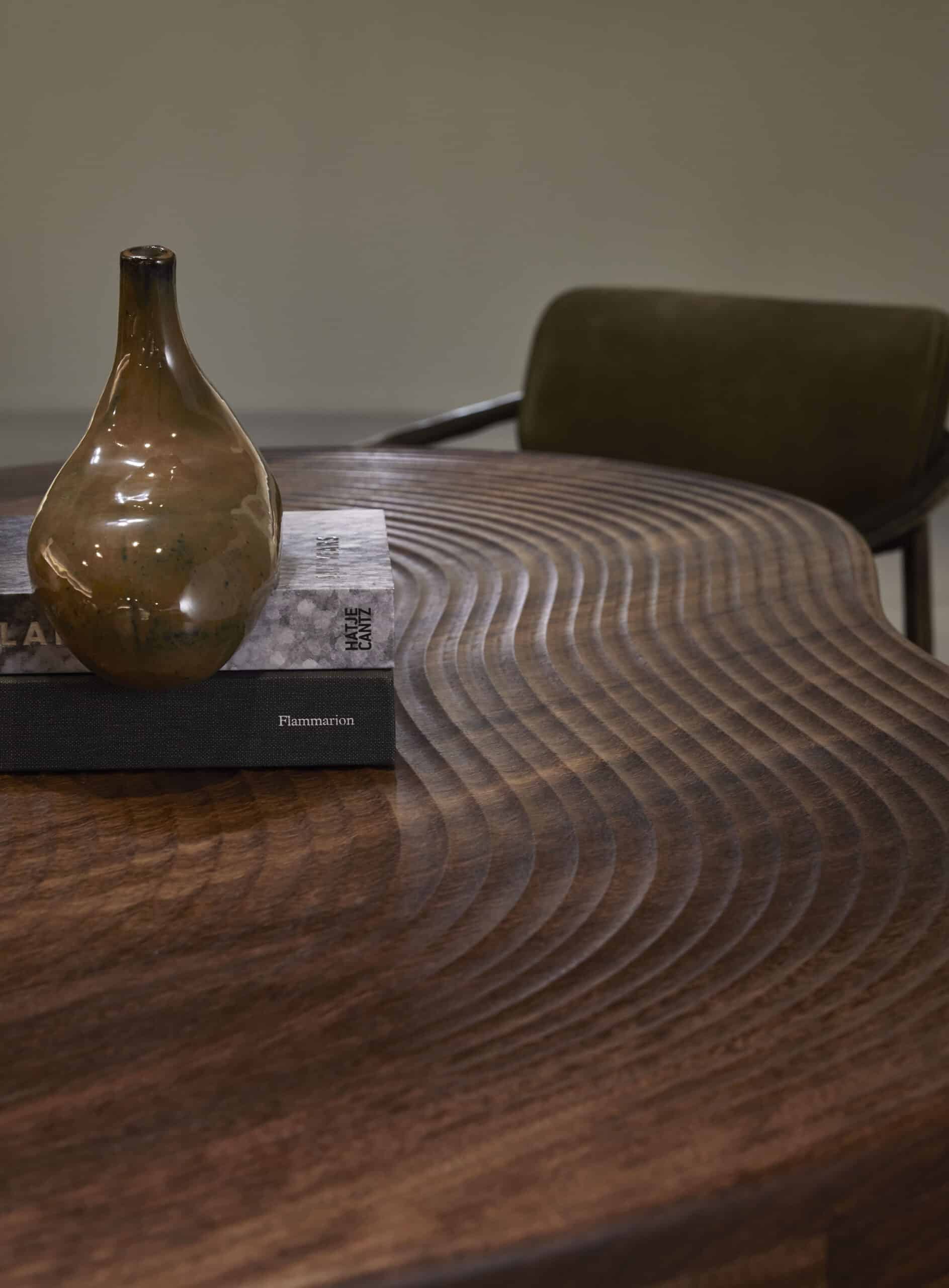 With ‘Isola’, Roderick Vos challenges the convention of having round, square or rectangular tables. Roderick was inspired by the pattern that waves leave on sandy beaches. Hence, the tabletops of the dining table, side table and coffee table in the series, feature an organic silhouette and delicately milled rings, making ‘Isola, quite literally, an island of beauty in any space.