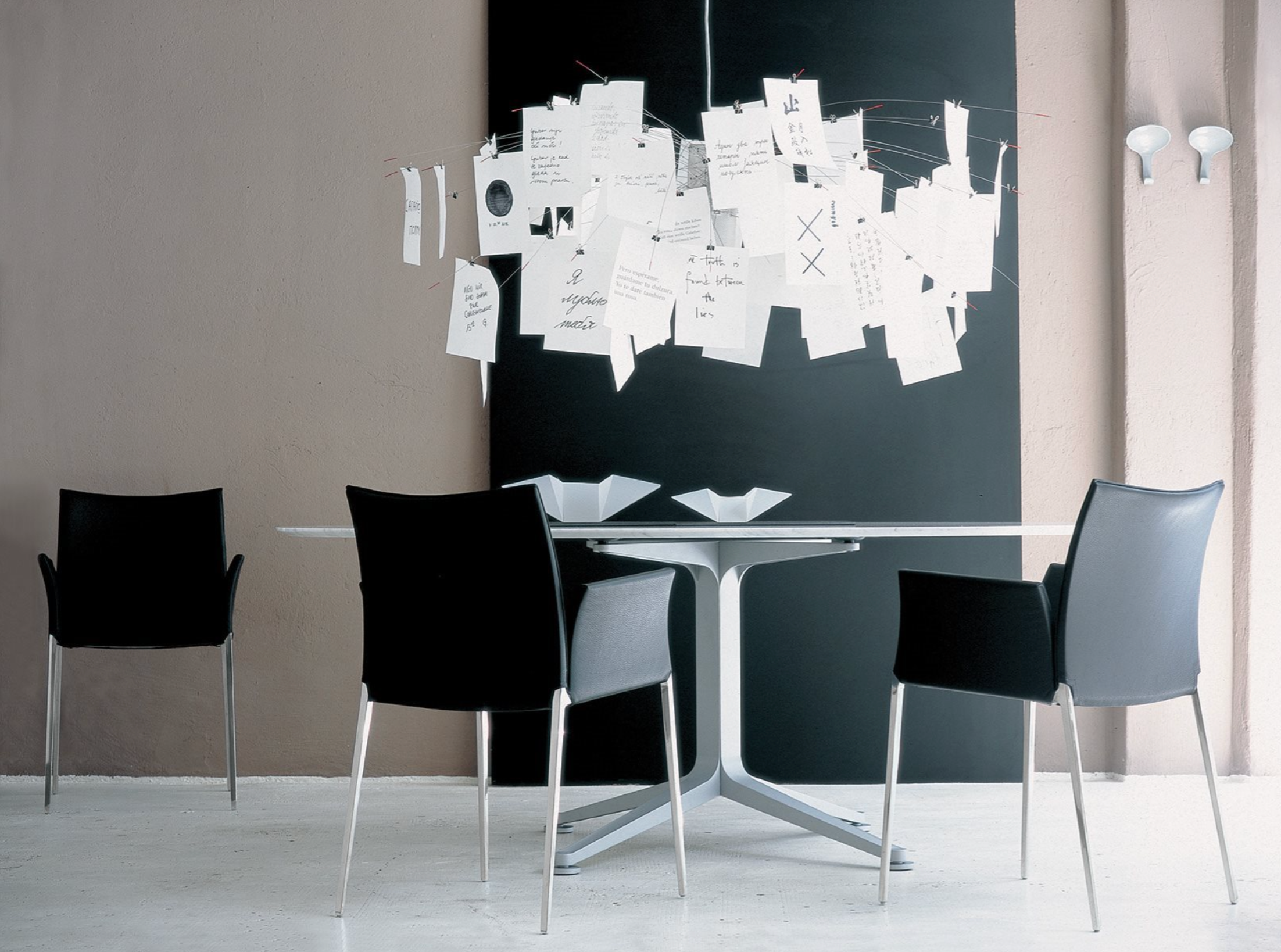 In 1999, continuing a now consolidated research on the leading topic of chairs with an aluminium frame, Zanotta presented the chair Lia that proved to be innovative due to the increasingly advanced use of die-casting: the chair side is made of one single element in aluminium alloy which holds the front and back legs and the chair back. Roberto Barbieri’s skill in designing this chair was also that of expertly merging an important technological innovation with a neutral, unimposing idea of shape which can easily adapt to any environment and furniture style.