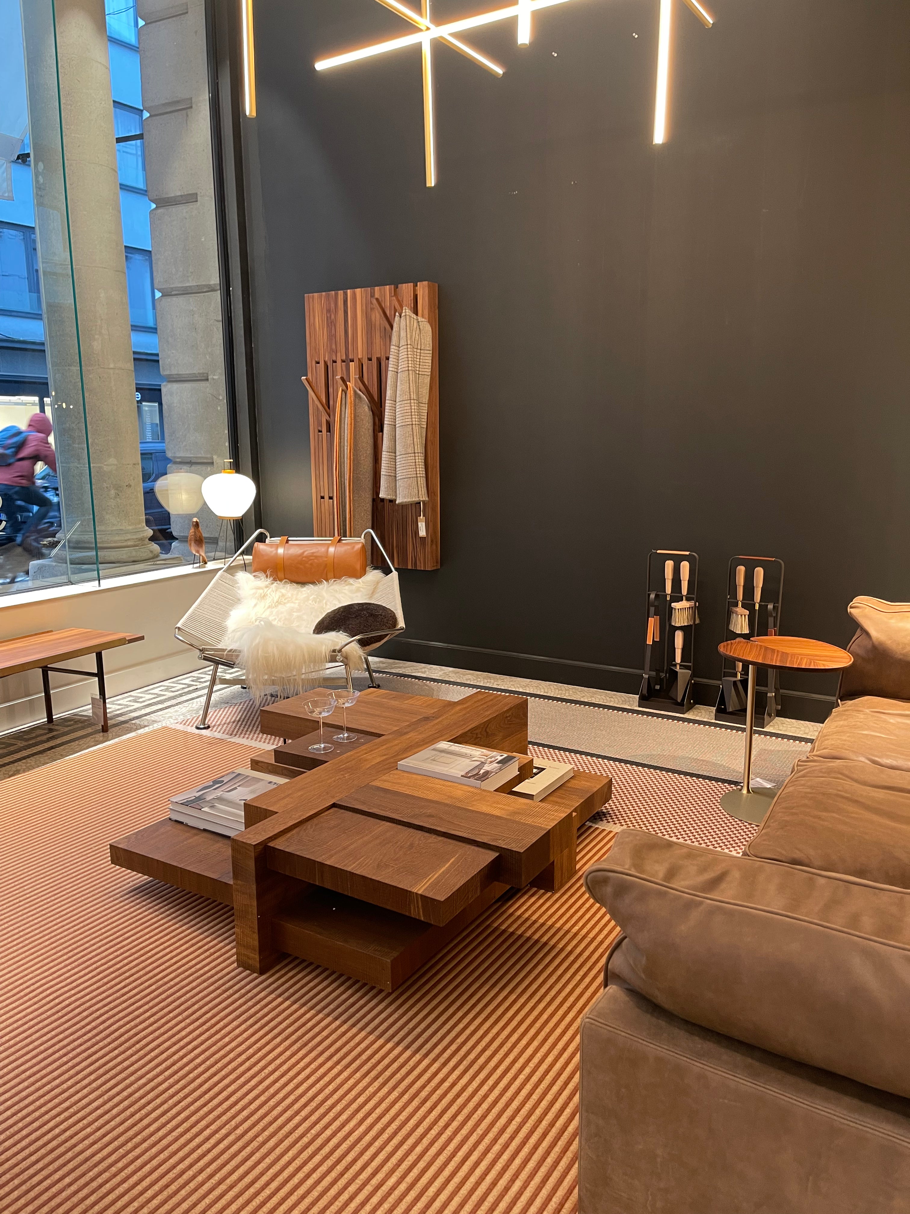 The ‘Manhattan’ coffee table by Dutch designer Roderick Vos defies ‘traditional’ table typology with its composition of wooden blocks and empty spaces, inspired by Piet Mondriaan and Russian Constructivism. This low oak table is beautiful and striking and, in fact, extremely practical. ‘Manhattan’ embodies that well known phrase: a place for everything and everything in its place. The natural cracks, knots and colour variations of the wood add to its robust appeal.