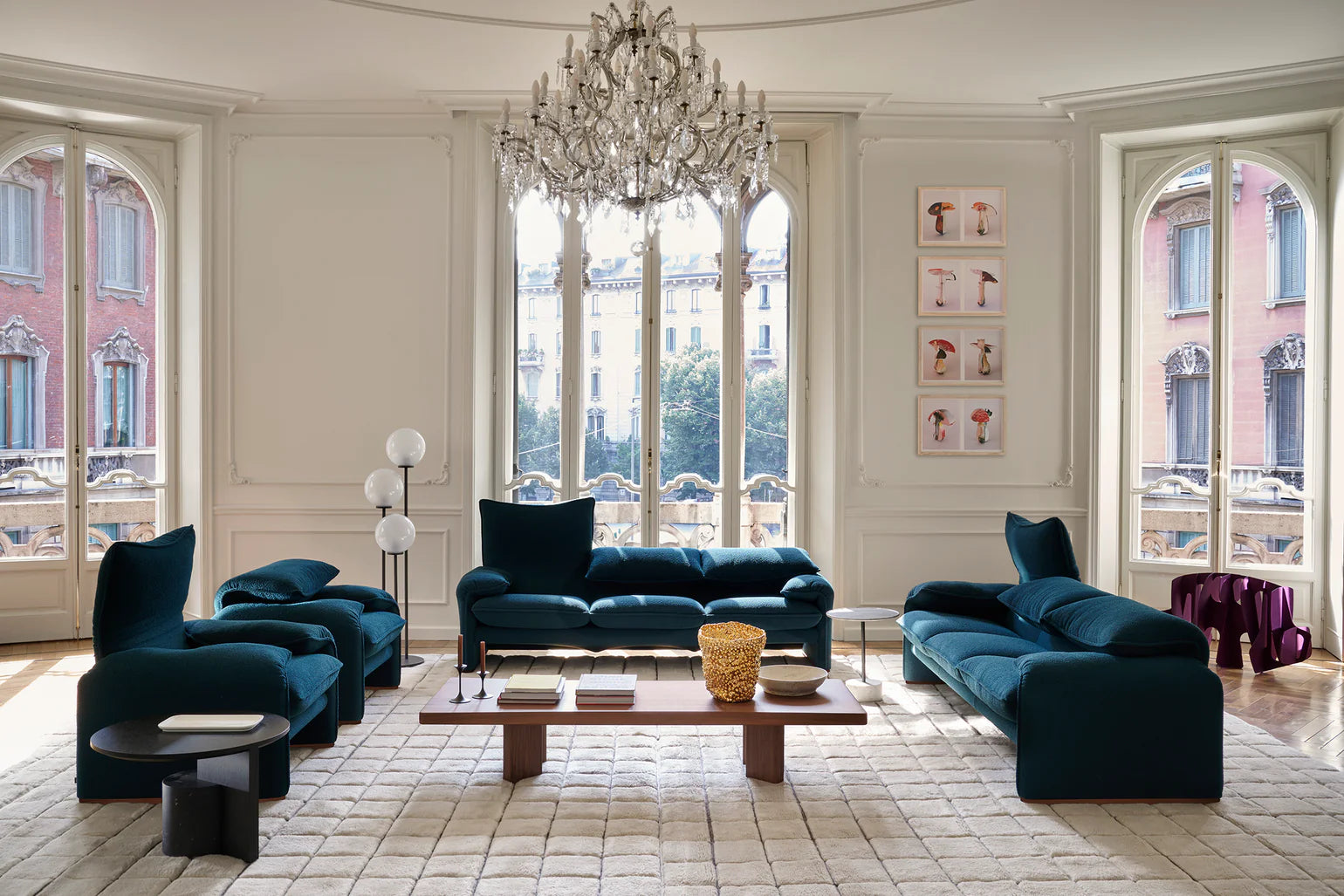 In 2014 an updated version with stitching along the perimeter of the cushions celebrated the 40th anniversary of the Maralunga sofa, an international bestseller steeped in timeless beauty and functionality.