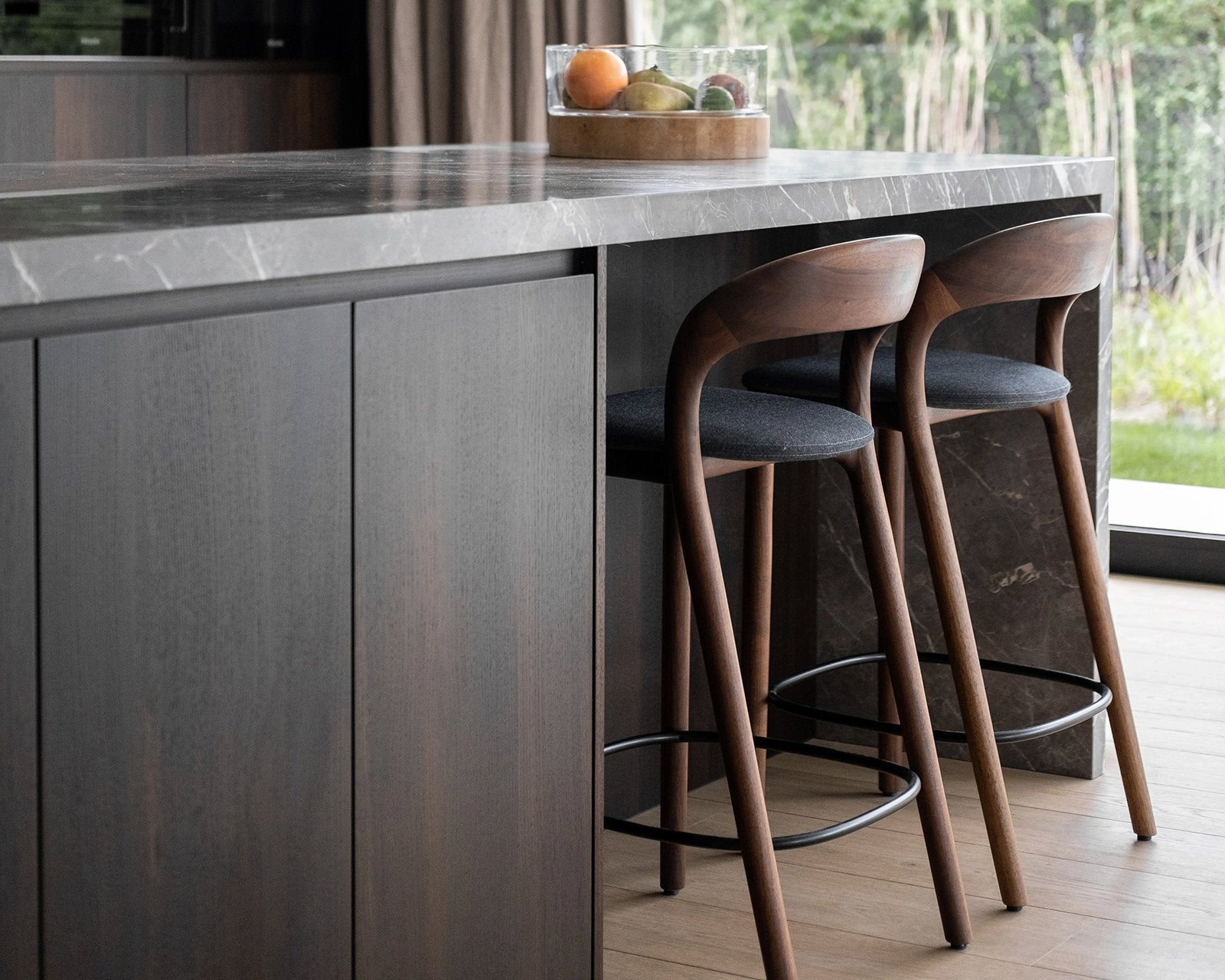 An ongoing flow of soft lines defines elegant units; it respects ergonomics and sophisticatedly rounds off an understated yet identifiable aesthetics. Like typeface, certain elements reappear in variations of clearly defined hallmark traits, characteristic strokes whose soft wood lines trace out the desired form, adapting themselves to the use by altering the line flow. Seating furniture variations are completed with practical cabinets, all subtly connected by a common aesthetic with a chance of creating a pleasant ambience out of similar elements. Thanks to their unobtrusive beauty, the elements from the Neva collection gracefully fit in already established interiors and adapt themselves to them, refining them while never losing their distinction.