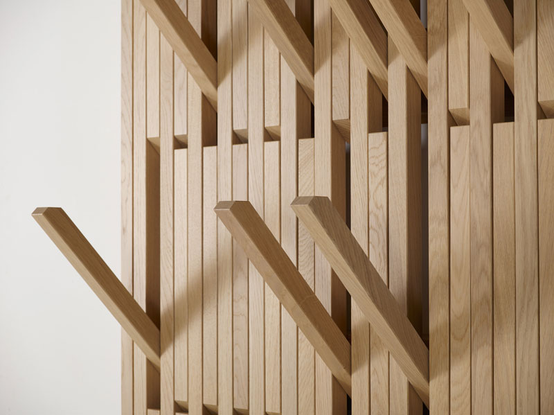 PIANO is a multi-purpose wall-mounted hanger panel with foldable hooks, originally designed as a coat rack by Patrick Séha (B) in 2010 during his design studies.The name PIANO refers to the musical instrument because of the similarity of the hooks of the rack with the keyboard of a piano.The flexible hooks of the PIANO can be opened or closed over the whole width of the PIANO, at four different heights. When not in use, all hooks (20 for the Small / 48 for the Large) can be closed, giving the PIANO a very elegant look and space-saving features.