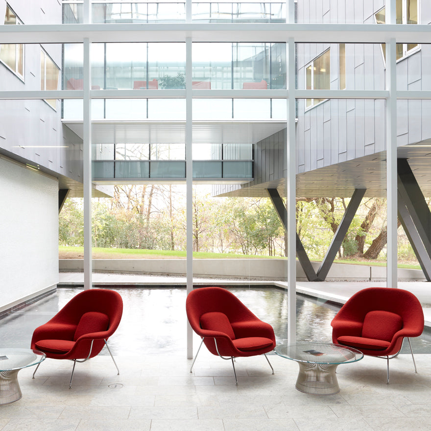 In 1966, the Platner Collection captured the "decorative, gentle, graceful" shapes that were beginning to infiltrate the modern vocabulary. The iconic coffee table, which creates a focal point in any modern living room, is created by welding hundreds of curved steel rods to circular frames, simultaneously serving as structure and ornament.