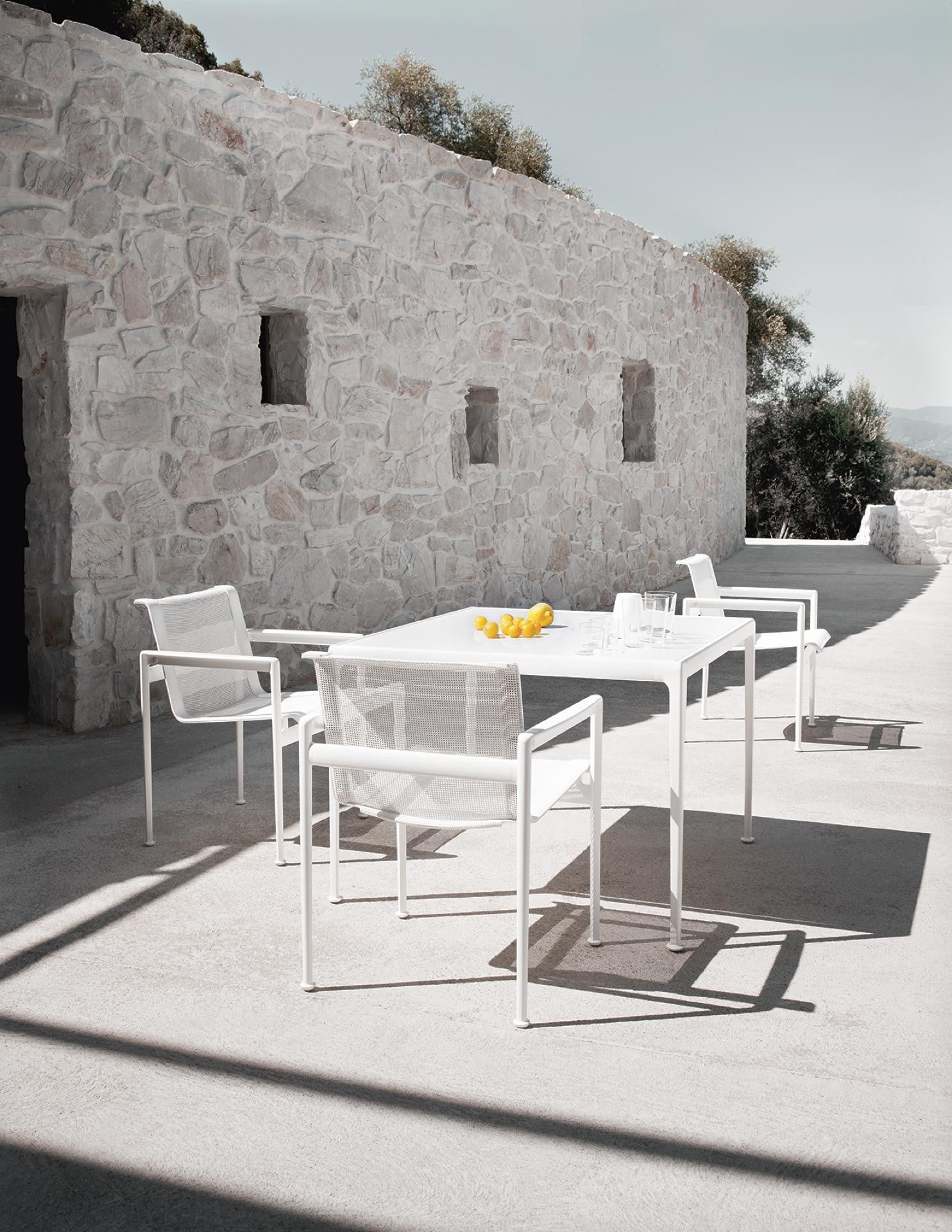 Richard Schultz's outdoor dining chairs have been setting the scene for modern meals outdoors for over 50 years. The aluminum frame makes them resilient to weather and wind, while the signature mesh back keeps you cool.
