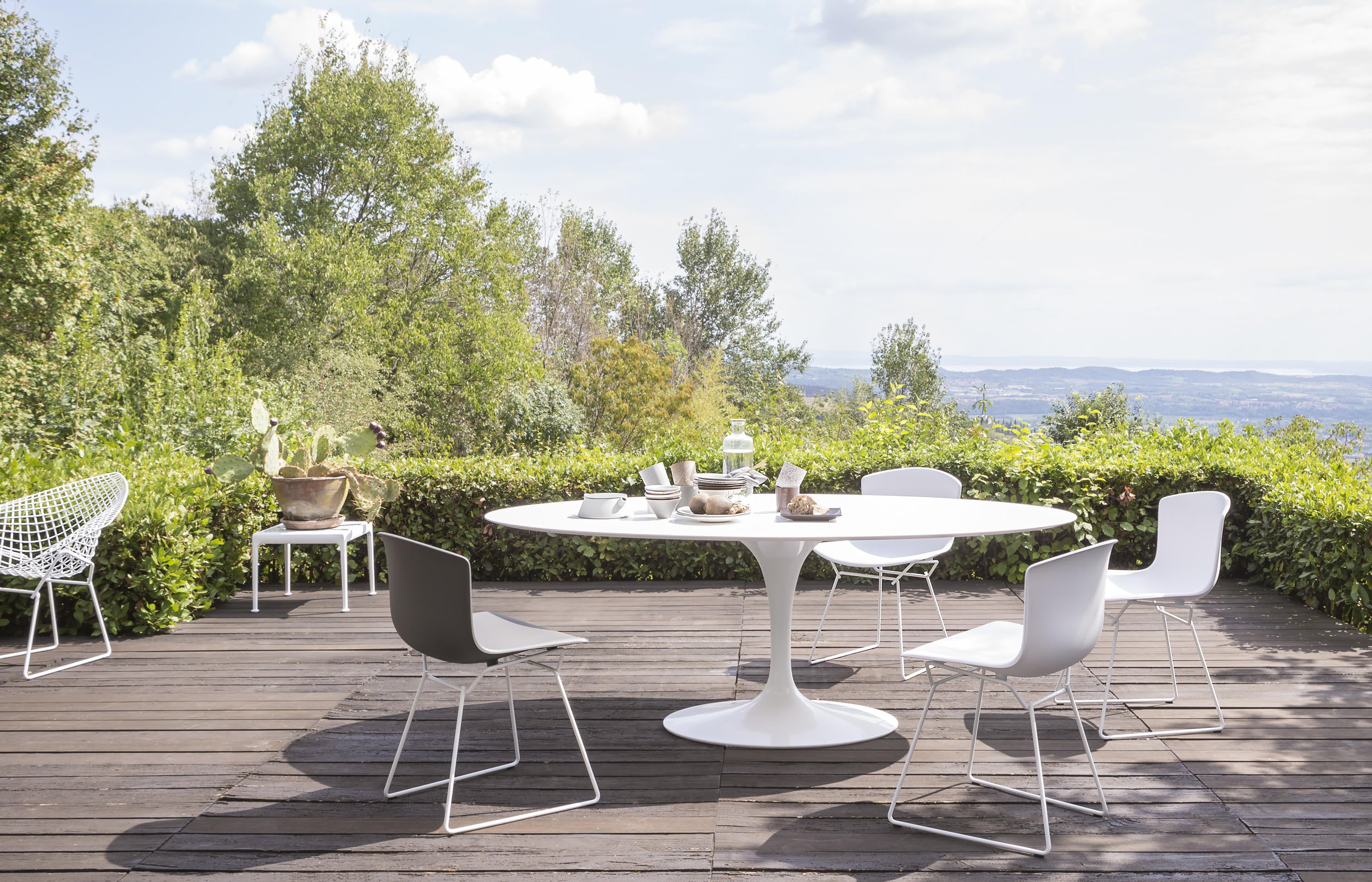 With the Pedestal Collection, Eero Saarinen resolved the "ugly, confusing, unrestful world" underneath tables and chairs. The collection is a defining accomplishment of modern design. All-weather hardware and materials ready the classic Saarinen table for a life outside—a modern focal point for any outdoor setting.