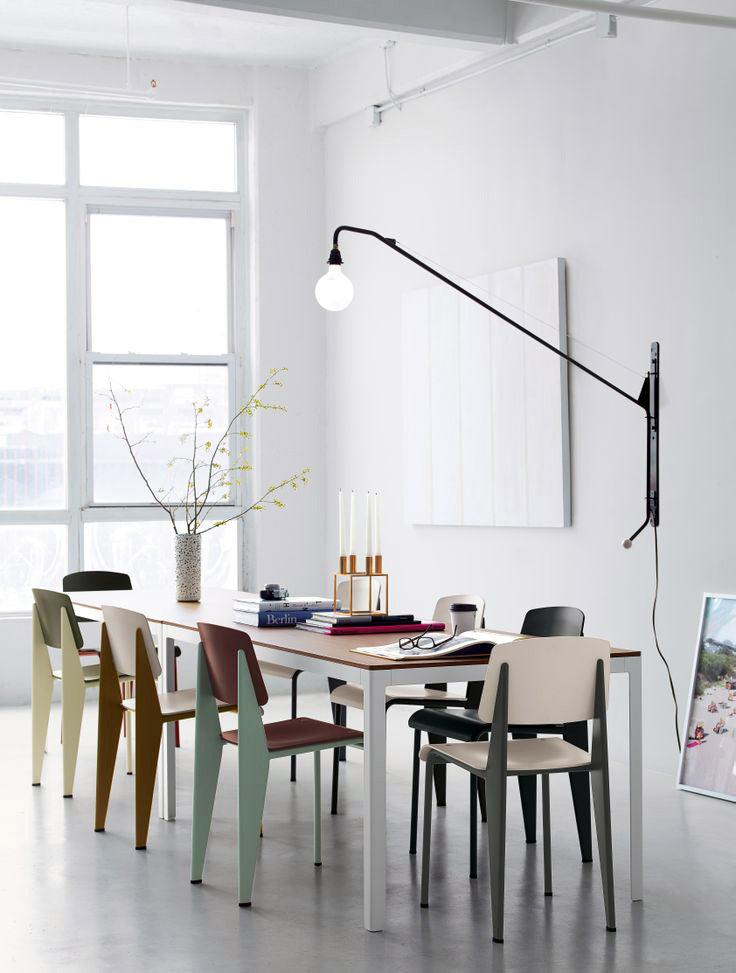 The Standard chair by Jean Prouvé has evolved into one of the most famous classics of the French 'constructeur'. The seat and backrest of this understated, iconic chair are available in various types of wood, and the metal frame comes in different colours.