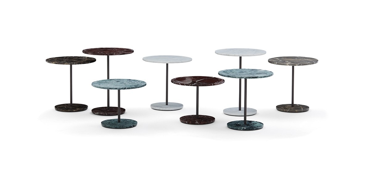 The perfection of the circle. The name Talos is derived from a plant native to Polynesia distinguished by the marked contrast between the size of its leaves and very thin stem. Drawing on this ambivalence, the coffee table designed by Keiji Takeuchi is an object modelled on the circularity of the base and top in marble, in two different diameters, joined by a thin line connecting them, almost inextricably. While aesthetics are essential at first glance, the carefully crafted top reveals the meticulous attention to detail. Talos moves transversally between the bedroom, living room and relaxation area, tracing out an essential design with three different heights and marble finishes Carrara, Calacatta Oro, Valentine Grey, Grey Stone, Emperador Dark, Grigio Carnico, in addition to the new proposals Verde Alpi and Rosso Lepanto.