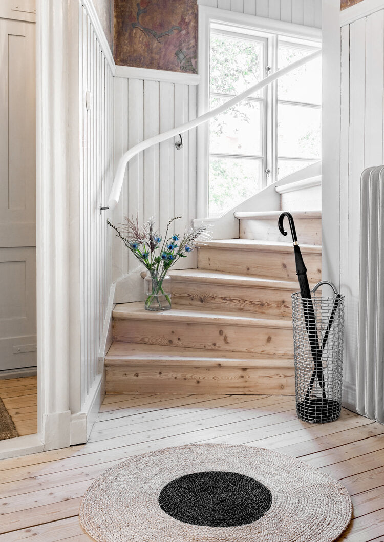 The Umbrella Bin is handwoven using the unique Korbo craftsmanship and comes with a separate base in cast iron that adds stability and collects water drips from the wet umbrellas. The base can easily be lifted out for cleaning.