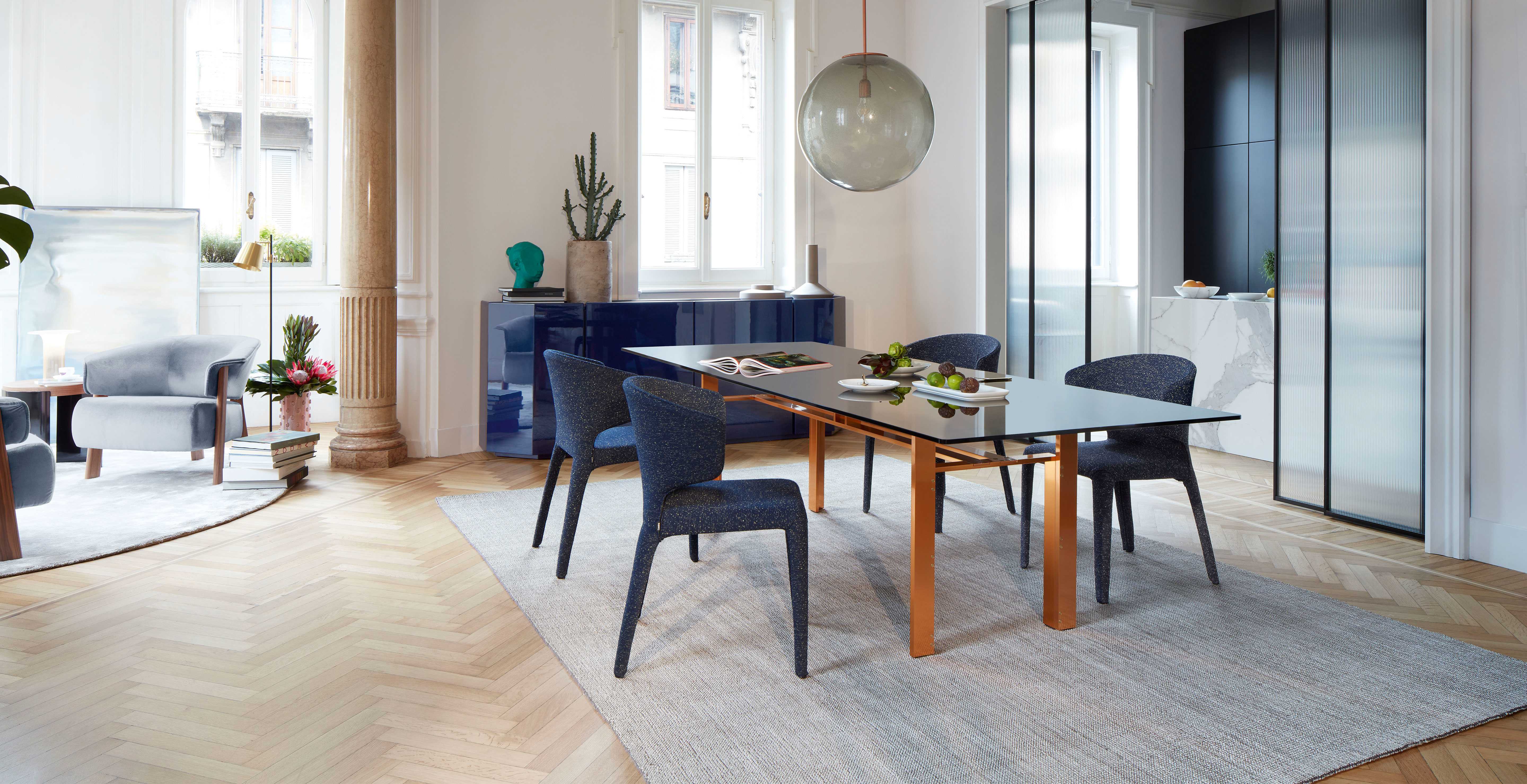 Elegant and functional, the Hola chair is one of Cassina’s all-time best-selling pieces. Conceived to offer comfort to the max, both in domestic environments and for contract use, Hola’s delightful curves, crafted from one single mould, conjure a harmonious interplay between the seat, back and legs, where the inner steel core of the chair marries the expanded polyurethane padded upholstery to perfection. Cassina’s construction skills are revealed in the company craftsmen’s approach to joints and their meticulous attention to detail. Supplied with or without arms, this chair is upholstered in leather, or with removable fabric covers, alternatively in its most recent iteration: leather with fabric.